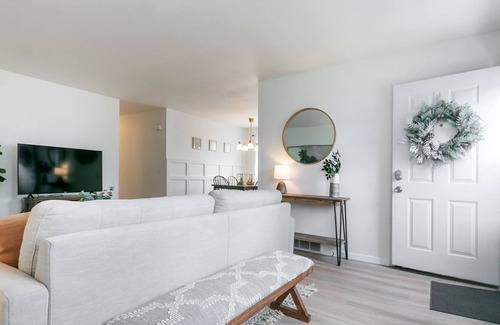 Enjoy a warm and airy stay with plenty of space for games and lounging. This unique half of a duplex couples modern living with the large living room and dedicated work space in the master bedroom.