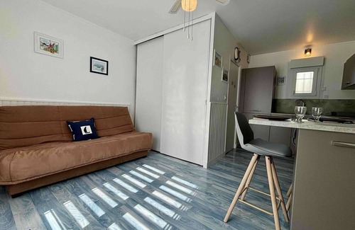 Joli studio à deux pas du Port de la Cotinière se composant d’une pièce de vie avec canapé convertible neuf de fin 2024 (140), cuisine neuve entièrement équipée et aménagée, coin repas, et salle d'eau avec douche et WC. En extérieur, terrasse close, avec mobilier de jardin et store. Stationnement dans la résidence.