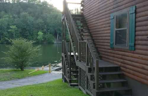Our Unique Log Cabin Home is just a few feet from the waters edge, and offers Breathtaking Views of Lake Hamilton.