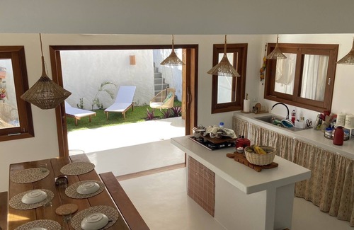 A quiet and cozy home located in the village of Gamboa do Morro. Casa Caju is a charming 160m² home with private pool, sitting in front of a beautiful forest. Just a 5-minute walk from the white sands of the beach of Gamboa and the Paredao de Argilla, and at 30 minutes walking distance via beach to the famous Morro de São Paulo. It's the perfect place to leave behind the stress of urban life and escape the noise of the city.