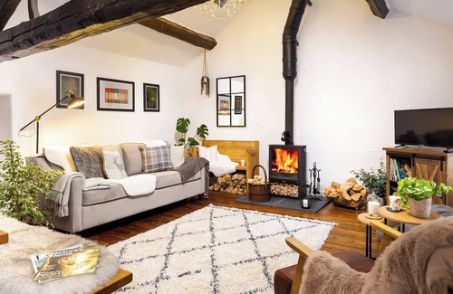 Amenities: Central heating. Electric oven and hob, microwave, fridge, washer/dryer, dishwasher. Smart TV, TV, WiFi. Fuel, power and starter pack for woodburning stove inc. in rent. Bed linen and towels inc. in rent. Patio with furniture. Outside dog shower. Two well-behaved dogs welcome. Permit parking for 1 car. Sorry, no smoking. Shop and a pub 0.1 mile. Note: Check-in from 4pm, check-out by 10am