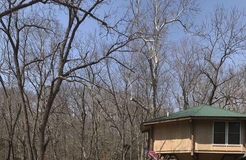 Hamilton Treehouse is a unique, fanciful custom built home on a pedestal with oversized windows overlooking: