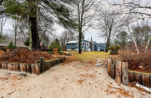 Quiet nature retreat perfect all-year-round w/private sandy beach+lake access! Max 8 adults (strictly enforced).Not suitable for parties/excessive noise. Spacious yard (not fenced) w/gradual entrance to lake. Swim, boat, fish, and kayak. Dogs allowed w/restrictions. Enjoy amazing sunsets from the hot tub! Followed by a BBQ,&beach fire pit. Get cozy indoor w/full kitchen, lake views, fireplace, &sauna. Nearby skiing, hiking, Long & Sebago Lake, horses, taverns, &grocery. 1h to Portland &N.Conway!