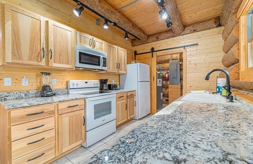 Perfect for a shared couple's escape or a small family getaway, this custom-built log cabin offers quiet country living and all the modern comforts of home. Pet-free and furnished for hypoallergenic comfort, the sunny interior features a single-level floor plan and open layout designed with family gatherings in mind. The kitchen showcases gorgeous counters and a full suite of major appliances for efficiently handling home cooking. The dining table sets the stage for dinners and game nights. The living room features comfortable seating and a TV for casual downtime. Make the most of blue skies in the summertime, watch the snow fall in winter, or be treated to stunning pops of fall colors and vibrant spring blooms out on the private, furnished deck.