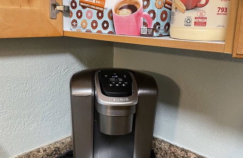 Kitchen has all the basics to prepare meals. Enjoy a cup of coffee from the Keurig to start your day! We have free k cups and creamer/sugar provided. There is a high chair available if needed.