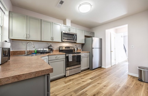 Step into comfort and convenience in this beautifully updated home featuring new laminate flooring on both levels. Each bedroom comes with its own spacious closet, and the property is fully equipped with central AC, a washer/dryer, and all-new stainless-steel kitchen appliances – including a dishwasher, refrigerator, electric range, and microwave.