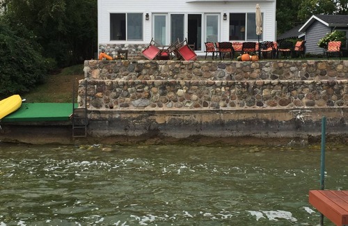 Of course, it's all about the lake! We have a lakefront yard with stone steps down to the lake, and a large dock that features a secure wide staircase to make sure that getting into the water is easy for everyone!