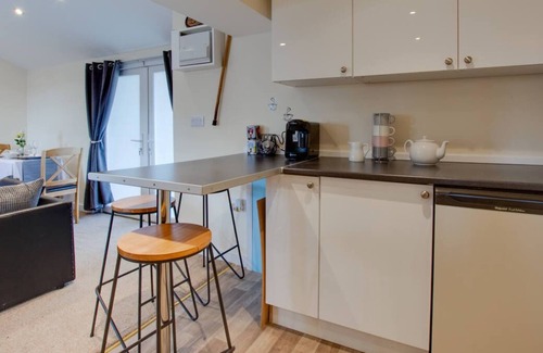 The open-plan living room/kitchen/diner is a bright room with plenty of space for you to sprawl out and relax on the sofa after a day of adventure. In the kitchen, you can sit up at the breakfast bar with your morning coffee, or serve up a home-cooked meal on the dining table for two, located by the patio doors. When night falls, the blissful double bedroom offers a comfortable place to rest your head, with an en-suite shower room for convenience. Extending the living space outside, the garden is full of life with complete privacy from the rest of the smallholding. Here you can dine alfresco on the table and chairs or sink into bubbling bliss in the hot tub and watch the stars sparkle above you; a perfect way to end the day.
