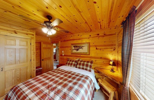 Inside, the cabin boasts five spacious bedrooms and three full bathrooms, offering ample room for everyone to relax and unwind. The fully furnished kitchen has all the amenities you need to prepare meals for the family, making it the ideal spot to gather and create lasting memories.