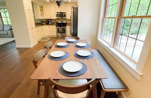 This spacious modern lodge has 4 bedrooms and 2.5 baths. One bedroom is on the main level, one bedroom on the upper level, and two bedrooms on the lower level of the home. It's newly renovated and furnished. The home has high-speed broadband fiber-optic internet and it's a perfect location to work remotely. We hope you enjoy your stay!