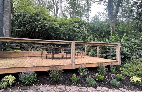 Outside, enjoy grilling/dining on the deck which overlooks the garden and private woodland beyond. A true country garden with a paved stone path leading down to a lawn area with plenty of space for hanging out. Continue to a river stone fire pit and Adirondack chairs, where you can listen to the babbling brook and watch the stars.