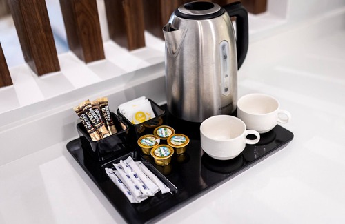 The dining area features a dining table and chairs to accommodate up to 6 persons, where you’ll devour your home-cooked meals. The kitchen is fully equipped with essential kitchen appliances featuring a microwave, a toaster, and a coffee machine for your convenience.