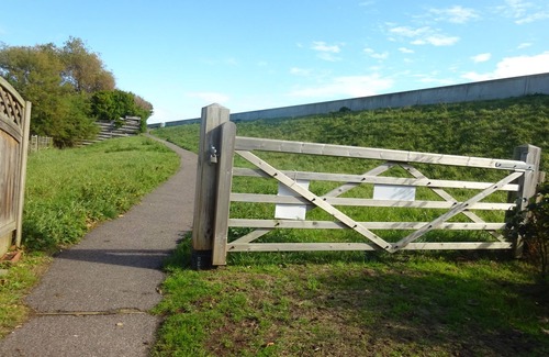 The rear gate leads you up a short track to the top of the sea wall & the lovely beaches to bathe, play, fish, etc.