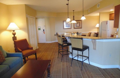This is a beautiful Wyndham timeshare resort inside the 30,000 acres that makes up Disney World. The resort is located on the same street as Disney s Caribbean Beach Resort and Downtown Disney. The resort has beautiful landscaping, 5 pools, 2 water slides, 2 lazy rivers, ping pong, shuffleboard, beach volleyball, 18 hole mini golf, gas grills, swings, a game room, and exercise room. All of this is free to guests. Parking is also included in the rental amount.