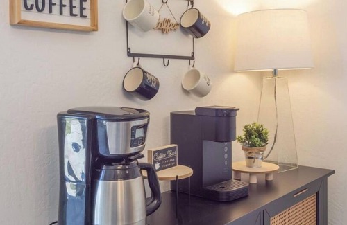 Dining Room has a large table that seats 8 people comfortably (high chair available for babies). Enjoy the coffee bar each morning! It is fully stocked with a Keurig and regular coffee maker.