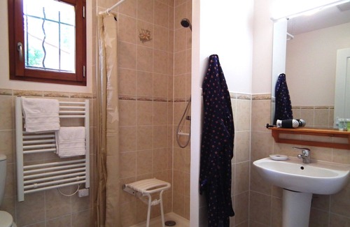 Layout: Ground floor: (Living room(double sofa bed, radio, CD player, garden doors), Kitchen(cooker(2 ring stoves), combination microwave, fridge-freezer), bedroom(double bed), bathroom(shower, washbasin, toilet)) 2x stables(on the same premises), tumble dryer(shared with other guests), washing machine(shared with other guests), parties, receptions(125 m2), heating(electric), terrace(roofed), garden(shared with other guests), garden furniture, parking, trampoline, pond, swimming pool(shared with other guests, heated), 2x swimming pool(shared with other guests, including part for children (depth 50cm)), 2x tennis court, boules court, play equipment, 2x table tennis table, table football, billiards, fitness equipment