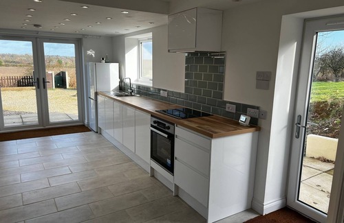 The ground floor is built into the hill and is available to book as part of the whole house or as a smaller accessible apartment. It has its own convenient parking area with rural views. There are two en-suite bedrooms and an open plan lounge/ dining/ kitchen area. The kitchen has an electric hob and oven, a fridge freezer, a dishwasher and a dining table.