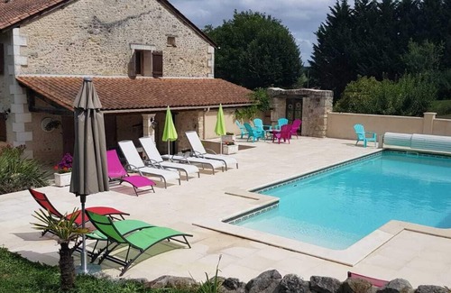 Detached spacious converted barn: heated pool, perfect for families, sleeps 13 has 4 Bedrooms , 4 Bathrooms, and max occupancy of 12 people. The minimum rental for this property is 1 nights, but this can change depending on the season you plan on staying. Previous guests have given good rated it, and VRBO labeled it a top-rated House because of the excellent services rendered by the owner or manager of this House, and has consistently provided great experiences for their guests. Most families or guests that use it recommend it to their friends and some of them are repeat guests. House has a friendly neighborhood, and the Passirac has interesting places to visit. If you want to learn more about the House in Passirac, such as places to visit and things to do nearby, you can check below to learn more.