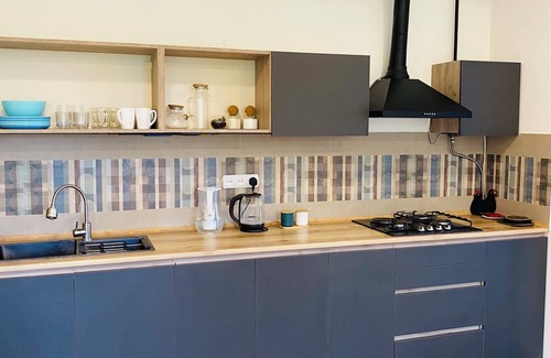 - Modern and equipped kitchen with fridge, electronic teapot, stove and all necessary things to prepare breakfast and dinners (like dishes, knifes, cups, glasses, pots, pans and etc.)