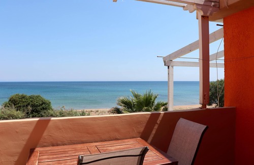 Directly on the fine Memi sandy beach located studio with sea view. | Apartment in Koroni