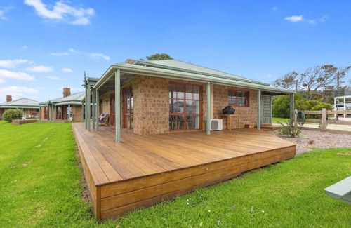 Set on 8 acres of manicured common property, this newly renovated, 2-bedroom cottage has a substantial decked area, perfect for outdoor entertaining or a relaxing glass of wine whilst you watch the sun set over the ocean. The home features a generous lounge /dining area with an electric fireplace, Wi-Fi, Smart TV, fully equipped kitchen & laundry, and a spacious bathroom.