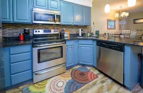 Our home is a haven of comfort, designed to host guests easily. The bedrooms are a refuge of relaxation, adorned with clean, high-quality linens, pillows, and towels. The living space has large windows which bathe the living and kitchen in natural light, featuring a large TV, a fireplace, and comfy seating, all in an inviting open layout. Families will enjoy a fully equipped kitchen with all necessary appliances and utensils, an electric stove, stainless steel appliances and granite countertops, a fridge w/ freezer, a microwave oven, and all the essentials.