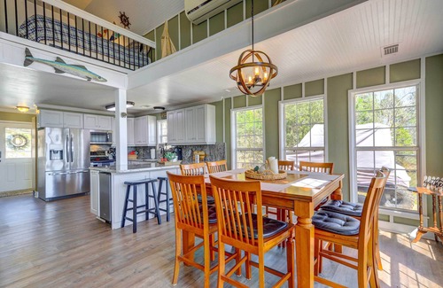 Head to the heart of Georgia for a relaxing retreat at this 4-bedroom, 3-bath vacation rental on the shore of Lake Sinclair! Begin each morning by watching the sunrise on the deck over a cup of coffee, then plan to spend the day fishing off the dock, or exploring the lake by boat. 'Paradise Point on Lake Sinclair' offers quintessential lake house style inside and out, from the spacious sun-kissed living room to the waterfront fire pit, perfect for making memories with the whole family.