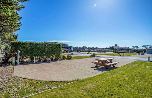 Stay a few steps away from the beach at the beautiful Pacific Shore Motorcoach Resort near Newport, Oregon.