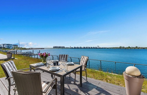 Luxury holiday apartment on the quay with whirlpool, wellness sauna and dream view of the loop, the marina and the Baltic Sea. Our lovingly furnished apartment with 2 bedrooms is located in the immediate waterfront at the quay of the new Baltic Sea resort of Olpenitz, probably the most beautiful place on the Baltic Sea. The houses stand on stilts directly in the harbor basin.