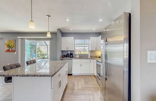 Step outside to the patio area, where you can fire up the gas grill and enjoy peaceful canal views or take a refreshing dip in the outdoor pool — a great way to unwind and soak up the Florida sunshine.