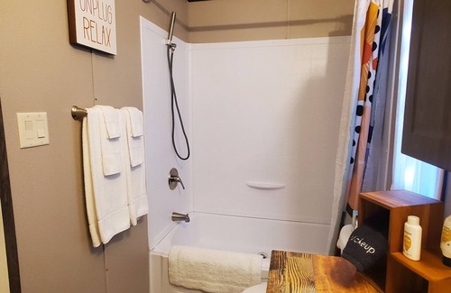 The retreat is off the beaten path but only minutes away from all you need. Show Low is 12 minutes away and the Stanford Store is just 5 minutes away. You have many options while you work the kinks out of your mind and body; sleep in, no one will notice, have breakfast at 11am, sit outside and get some sun, listen to the wind chimes, read a good book, watch a good movie, play some soothing music on the Balmy drum or color in a coloring book.