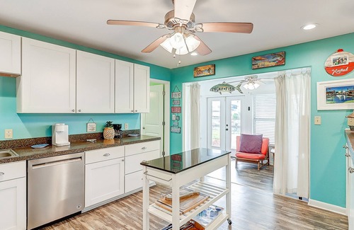 Set right on the canal, this adorable, single-level home is a terrific, family-friendly option for your next visit to Rockport! Fun, bright, and colorful, this charming, beach-themed vacation rental features a well-equipped, full kitchen with all the appliances and accessories you need to make preparing everyone's favorite recipes a snap! Enjoy quick snacks at the breakfast counter or more formal meals at the dining table with seating for eight. You'll also find a gas grill and a table and chairs out back for perfect summertime BBQs! Settle into the main living area or the furnished sunroom where you can socialize or stream your favorite channels on the TVs.