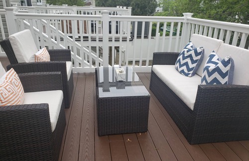 Light, airy, upscale, modern, art lover, beach chic, interior designer decor home.1st floor open floor plan concept abundance of natural sunlight throughout. Second floor flooded with natural sunlight front and bsck of the house. Feel as though you are staying in a home on the cover of Interior Decorator Magazine. Wake up in morning enjoy your coffee on front porch watch the world go by or on the back deck soaking up some sun. After a day of sun and beach, enjoy a rainfall shower wrap yourself in freshly laundered pressed designer summer cotton robe and slip on bamboo slippers curl up to a book enjoy on hammock in shaded quiet, private zen like reoaxation area on lower level patio. Enjoy cocktails on the back deck while watching the sun go down. Town is less than 3/4s of a mile and walkable to beaches, bars, live music, restaurants, yoga, french bakery cafe, ice cream shop, farmers market, parks...