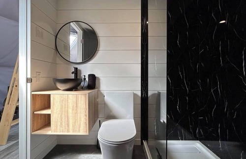 Découvrez le raffinement du glamping avec nos dômes au design chic et contemporain, pouvant accueillir jusqu'à 4 personnes. En bordure directe du lac, ces unités offrent un spa au bois pour une relaxation totale. Chaque dôme est équipé d'une cuisinette, d'un réfrigérateur, d'une salle de bain complète, de deux lits queen-size, d'un canapé, d'un coin repas et d'un poêle à bois pour une ambiance chaleureuse.