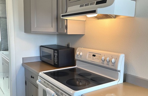 The bright, clean house offers a fully equipped kitchen with an eat up bar and opening dining area. The laundry room with a washer and dryer is located off the kitchen. The bedroom offers a queen bed with cozy linens and the attached bathroom has a tub/shower combo. The main living space is comfortable with a sofa sleeper for additional guests and TV to relax and hang out with your family. Downtown Cabin is pet friendly with an enclosed dog run for your 4-legged friends!