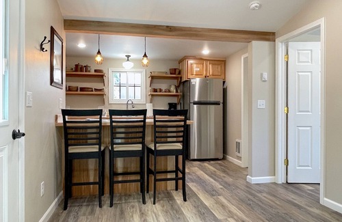 Welcome to Downtown Casita! This recently renovated, southwestern inspired home is full of modern amenities for a comfortable stay. The kitchen is fully equipped with new full-size appliances to meet all your cooking needs! The casita's cozy living space offers a 43-inch smart TV, desk and newly updated sofa. The welcoming bedroom features a large window which brings in an abundance of natural light making for a spacious and bright space. The bedroom offers a comfortable queen bed. There is also a stackable washer and dryer hidden in the closet! The bathroom is crisp and clean featuring a beautiful, tiled walk-in shower.