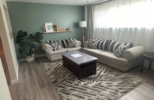 Our newly renovated basement suite features two bedrooms, one bathroom and accommodates four guests. We offer on-site laundry, separate entrance, and are adding new countertops and a dishwasher soon.