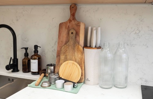 Designed with sleek white cabinetry and lots of natural light, this gorgeous kitchen has everything you need to create tasty meals and lasting memories. Fitted with modern integrated appliances and fully equipped with quality cookware including a full-sized fridge and freezer, oven, induction stove and blender, enjoy cooking up a storm in this space! Next to the window you'll find a wooden dining table with enough space for three, so you can share wonderful meals or bathe in the morning light. And while we highly recommend checking out some of the fantastic local coffee shops, feel free to take full advantage of the Delonghi coffee machine and Mysoda sparkling water maker too!