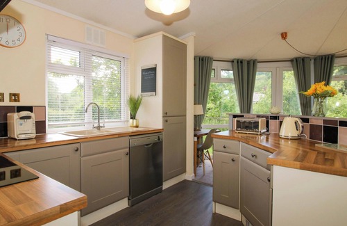 Dunromin, a single-storey lodge, consists of a kitchen with electric oven, induction hob, fridge/freezer, washing machine, and dishwasher, a dining area with seating for six guests, and a sitting area with Smart TV, electric fire and Juliet balcony. The bedrooms consist of a double with en-suite shower, double, and twin serviced by a bathroom. WiFi, fuel, power, bed linen, and towels are included in the rent. Outside, there is a private wrap-around enclosed garden with decking, lawn, and furniture, and off-road parking for three cars. Two well-behaved pets are welcome. Sorry, no smoking. Within 4.3 miles you will find a shop, 1.5 miles a pub and 0.1 miles a river. Find your perfect escape at Dunromin. Note: There are steps up to the property.