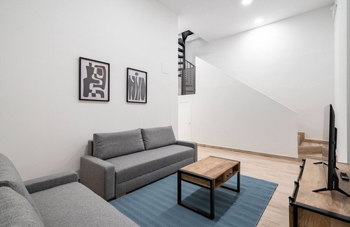 Welcome to our renovated and cozy two-level apartment in the Moratalaz area of Madrid for temporary rental. This spacious and modern home is perfect for large groups or families, comfortably accommodating up to 8 people with its excellent amenities and well-thought-out design.Apartment characteristics:Two spacious levels: Enjoy the comfort and privacy offered by a two-level apartment, perfect for large groups.Two comfortable rooms: Each room is equipped with comfortable beds and ample storage space, ensuring restful sleep for all guests.Two cozy lounges: ONE lounge features two sofa beds that can accommodate two people each, along with television and dining areas, providing perfect spaces to relax and socialize.Two full bathrooms: Modern and clean, equipped with all the necessary amenities for your comfort.Fully equipped kitchen: Ideal for preparing meals for large groups, with all necessary appliances and utensils.Free Wi-Fi: Stay connected during your stay.Location:The apartment is located in the quiet and well-connected neighborhood of Moratalaz. Just a few minutes walking, you will find public transport stops that will easily connect you with the center of Madrid and its main attractions. The area also has a variety of shops, bars, and restaurants, offering you an authentic local experience.Additional services:Bed linen and towels includedWashing machine availableLocal information and recommendations upon arrivalThis renovated and cozy two-level apartment is your ideal home away from home in Madrid, providing you with everything necessary for a memorable and comfortable stay. We hope to welcome you soon!