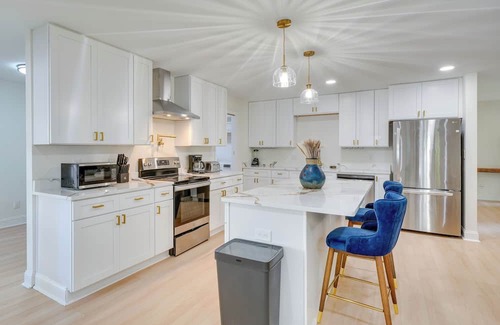 Discover the perfect Durham retreat at this 4-bedroom, 3-bath vacation rental. Featuring multiple Smart TVs, a full kitchen, a game room, and an amenity-packed backyard, this home is great for fun-loving families or groups of friends. Tour the University of North Carolina in Chapel Hill or Duke University, take a stroll through the North Carolina Botanical Garden, or check out the Nasher Museum of Art. After exploring, make a splash in the private pool or whip up a new recipe on the gas grill!