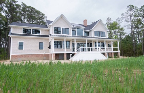 We invite you to slow down and relax in this newly constructed, waterfront sanctuary. Built and furnished in 2022, you will experience the highest quality & design with stunning water views from almost every room in the house. Enjoy spectacular views from the front or back covered porches overlooking the expansive creek. Bird watching, sunbathing on the beach and beautiful sunsets are part of this enchanting setting.