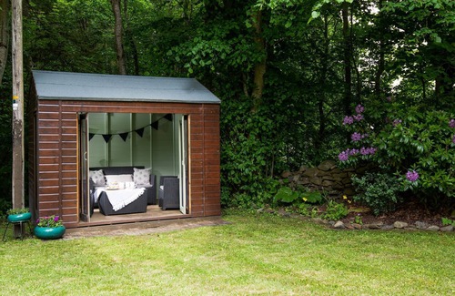There is a large garden to the rear and side of the lodge which can either be accessed from the parking area or via steps from the rear. Please note the garden is not enclosed. The garden has a summerhouse with garden furniture and a barbecue is available on request. The summerhouse is a lovely sheltered spot to read and unwind or possibly catch sight of deer, pheasant or red squirrel. There is a wildlife pond, home to goldfish and newts, to the rear of the lodge. Lockable bike storage is available in a cellar area accessed externally to the rear. There is an outside tap and hose for cleaning bikes and outdoor gear.
