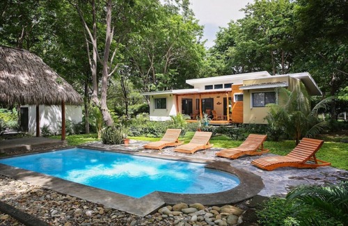 Casita Celeste is a bright and modern eco-casita located right on the golf course in the gated community of Hacienda Iguana. This 3-bedroom, 2-bathroom home is ideal for families or small groups looking to enjoy comfort, privacy, and direct access to nature.
