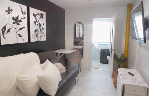 This unique, efficient space has all the bare essentials for the budget-conscious traveler. Designed thoughtfully, our cozy space maximizes comfort and convenience within a compact footprint. Tailored for the modern traveler, the room features a cozy sleeping area (a futon that doubles as a bed), a functional kitchenette equipped with a Keurig, mini fridge, a microwave and a streamlined work desk. Every inch is optimized for practicality, making it ideal for short stays or extended visits.