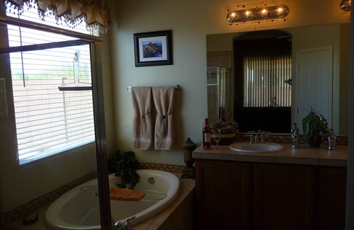 El Saguaro accommodates every travelers needs, whether you are looking for a family destination, relaxation, business or a romantic getaway. El Saguaro is an exquisitely furnished home located in the Dove Mountain community in the Town of Marana, just 20 minutes from Tucson. The three bedroom and two bathroom house is completely furnished with comfort in mind. The master bedroom has a king bed and queen beds in each of the other two bedrooms. High quality cotton sheets along with two robes are provided in each bedroom. The kitchen is stocked to please even the experienced chief, including a wine selection. The backyard provides a private viewing of the scenic desert with your morning coffee and a fire pit to create an unforgettable setting of the desert sunset.