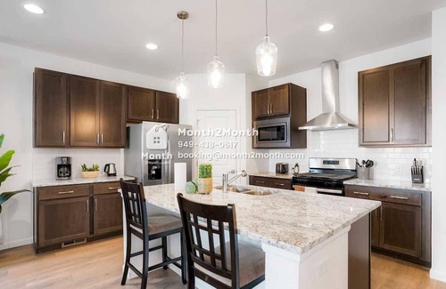 This modern, chic house in Longmont is the perfect home away from home. Relax with your family in the cozy living room and admire the stunning open view. The newly renovated kitchen features a center island, perfect for preparing delicious home-cooked meals with your loved ones. The property also boasts a spacious office area, ideal for those who need to work from home. The living room features professionally designed furniture and a fireplace for cozy viewing and heating during the snow season. Enjoy the ultimate comfort and luxury while staying in this exquisite home.