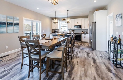 Kick off your shoes and relax at the lake - Driftwood Shores welcomes you to put your feet up and unwind in the charming Appalachian Mountains. Gorgeously styled and uniquely situated, Driftwood Shores boasts a large, flat yard with wrap-around lake access and restful, elegant living space. Five bedrooms, two living rooms, and two covered porches ensures you can comfortably host your whole family with room to spare. Pull your boat right up to the dock and take a break for yard games or spend the day fishing, swimming and having fun on the water. In the evening, you'll enjoy star gazing and fireside chats. When it snows or rains - enjoy a book or movie by the snug fireplace. Visit Driftwood Shores all year round and experience leisure at its best.