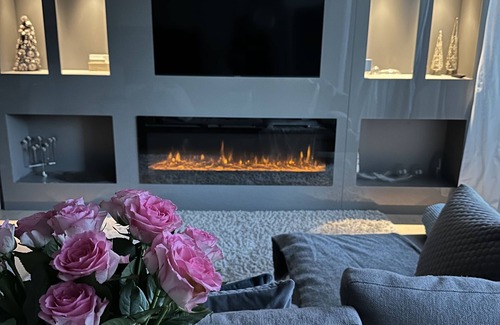 Decorated in a modern, minimalist style, the space features underfloor heating, a digital fireplace, hardwood floors, high ceilings, air conditioning and a private terrace for morning coffee or evening wine.