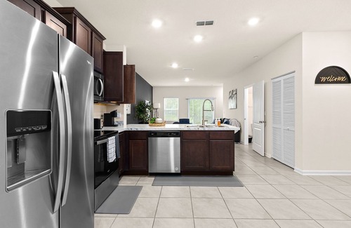 This elegant and upscale getaway will leave you in awe with its carefully picked amenity list spread over two inviting stories. Tile floors extend throughout the entire first floor. The living area combines the living and the dining room with the kitchen, creating a contemporary open concept design space.